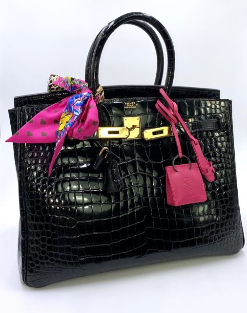 Hermès Birkin Black porosus shiny gold hardware, a bag to love und mit Charms zum individualisieren. Original neuwertig, nur auf Anfrage